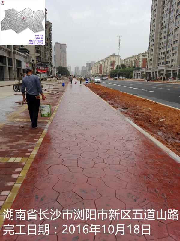 項目名稱:湖南省長沙市瀏陽市新區(qū)五道山路壓模壓花地坪工程 項目地址:湖南省長沙市